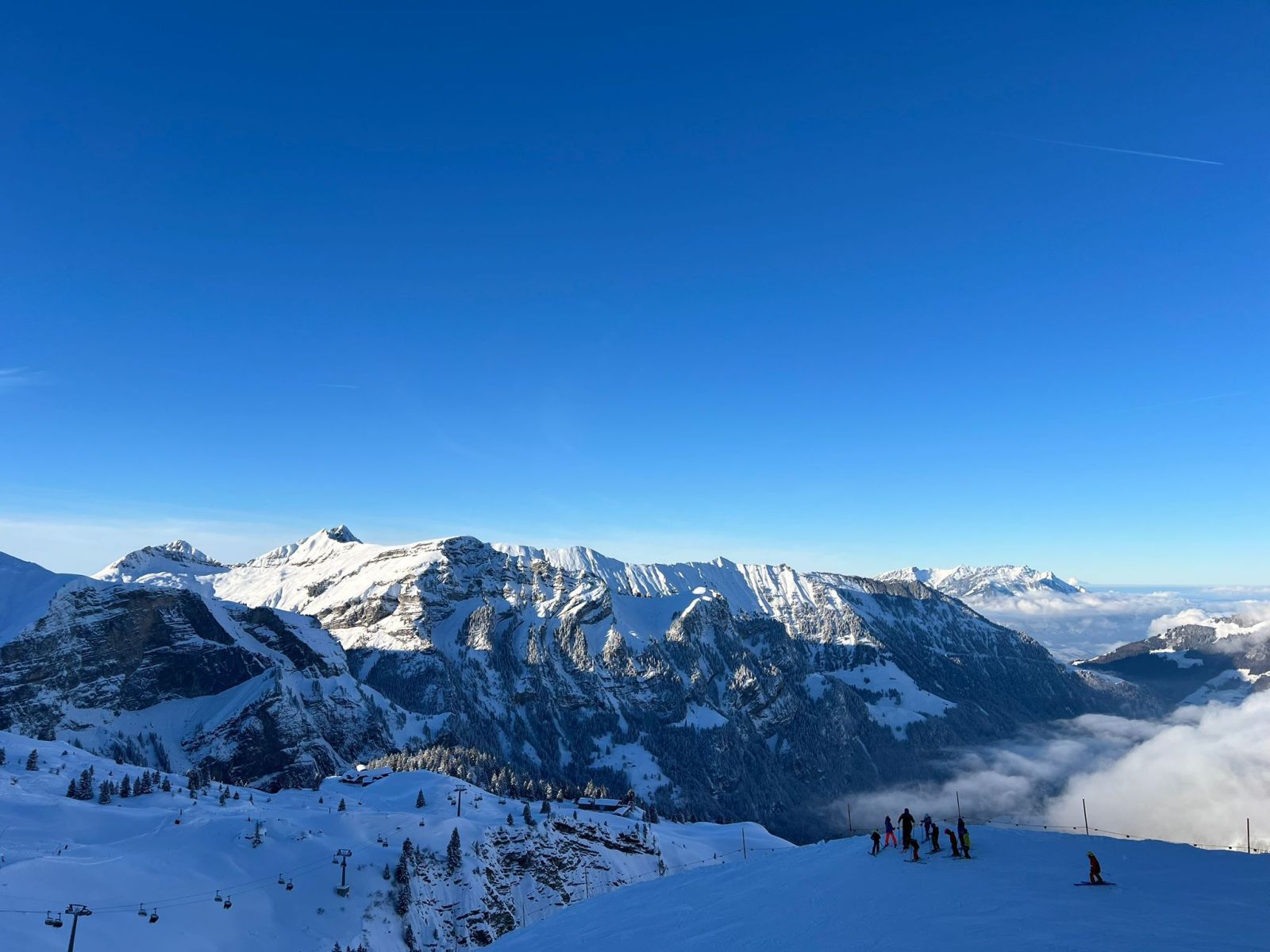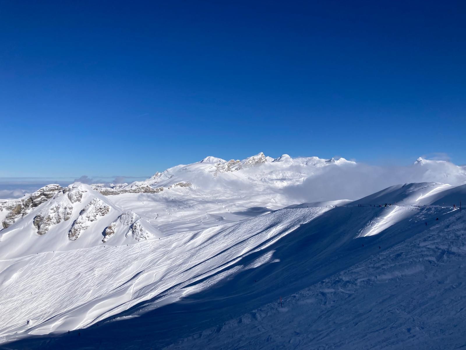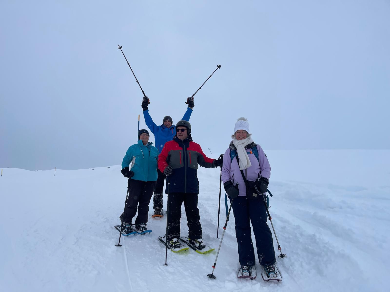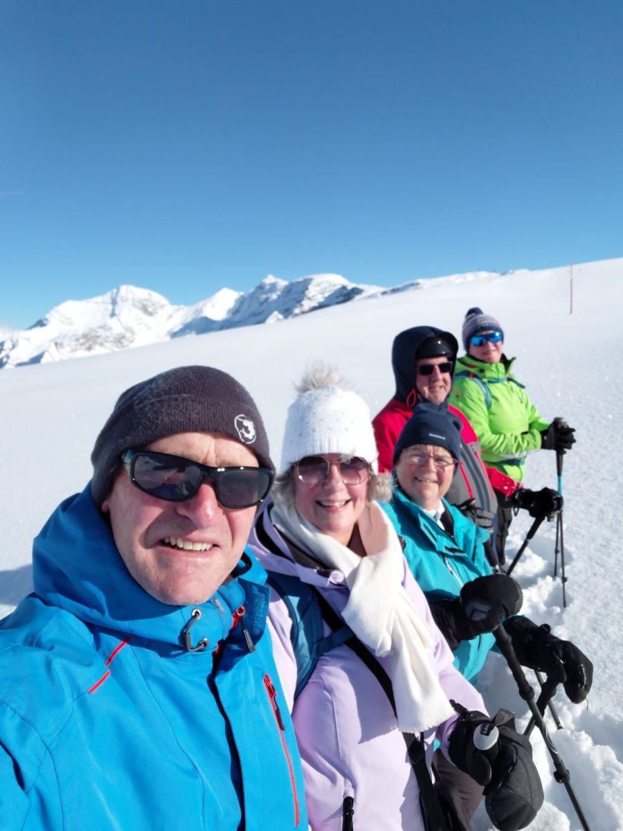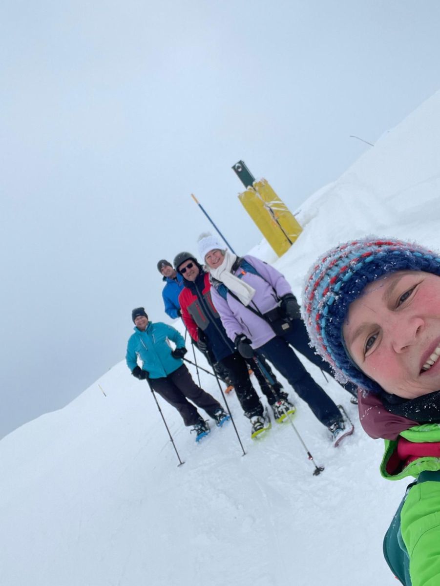 11.Januar: Nach dem stärkenden Morgenessen hiess es diesmal für alle: Ski, Snowboard oder Schneeschuhe montieren und ab die Post! Am Morgen, noch recht neblig, war die Stimmung super, und man erkundete die Pisten, welche am Samstag noch gesperrt waren. Während des Mittagessens stach dann die Sonne durch. Die Wolken verschwanden, und stahlblauer Himmel erschien. Dies wurde ausgenützt, und es wurden nochmals fleissig Pistenkilometer gesammelt. Um 16:00 Uhr traf man sich an der Talstation auf ein Abschiedsgetränk und das Gruppenfoto. Anschliessend machten wir uns mit dem Car auf den Heimweg.